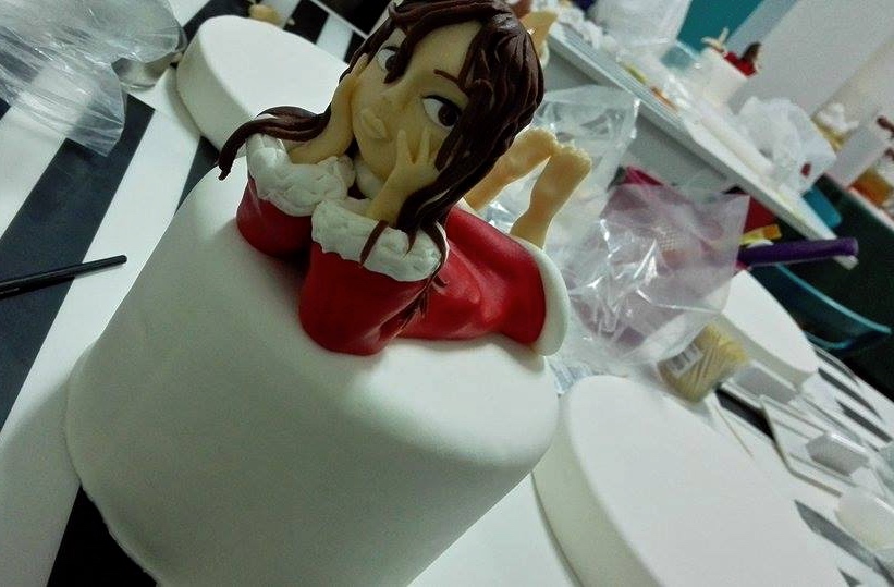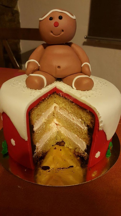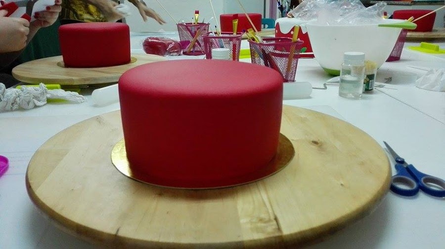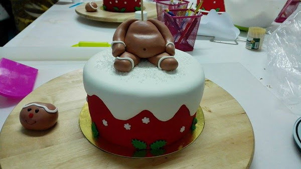 Te doy las gracias Yanina, de Hay una tarta para ti (Málaga), por ser como eres y por enseñarme tan bien!Hace un mes hice otro curso de tartas, el nivel 1, esta es mucho más sencilla y aprendí a hacer desde el bizcocho, hasta el relleno (de fresas con nata (crema de leche)), hasta cubrir una tarta para que quede perfecta, incluyendo el modelado de un muñequito de navidad.