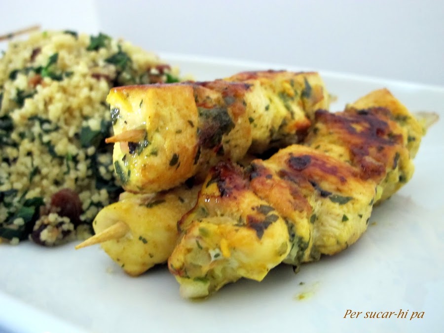 Para hacer el plato completo del todo, va acompañado por unas brochetas de pollo marinado que son un complemento perfecto para este viaje de sabores. espero que os guste.