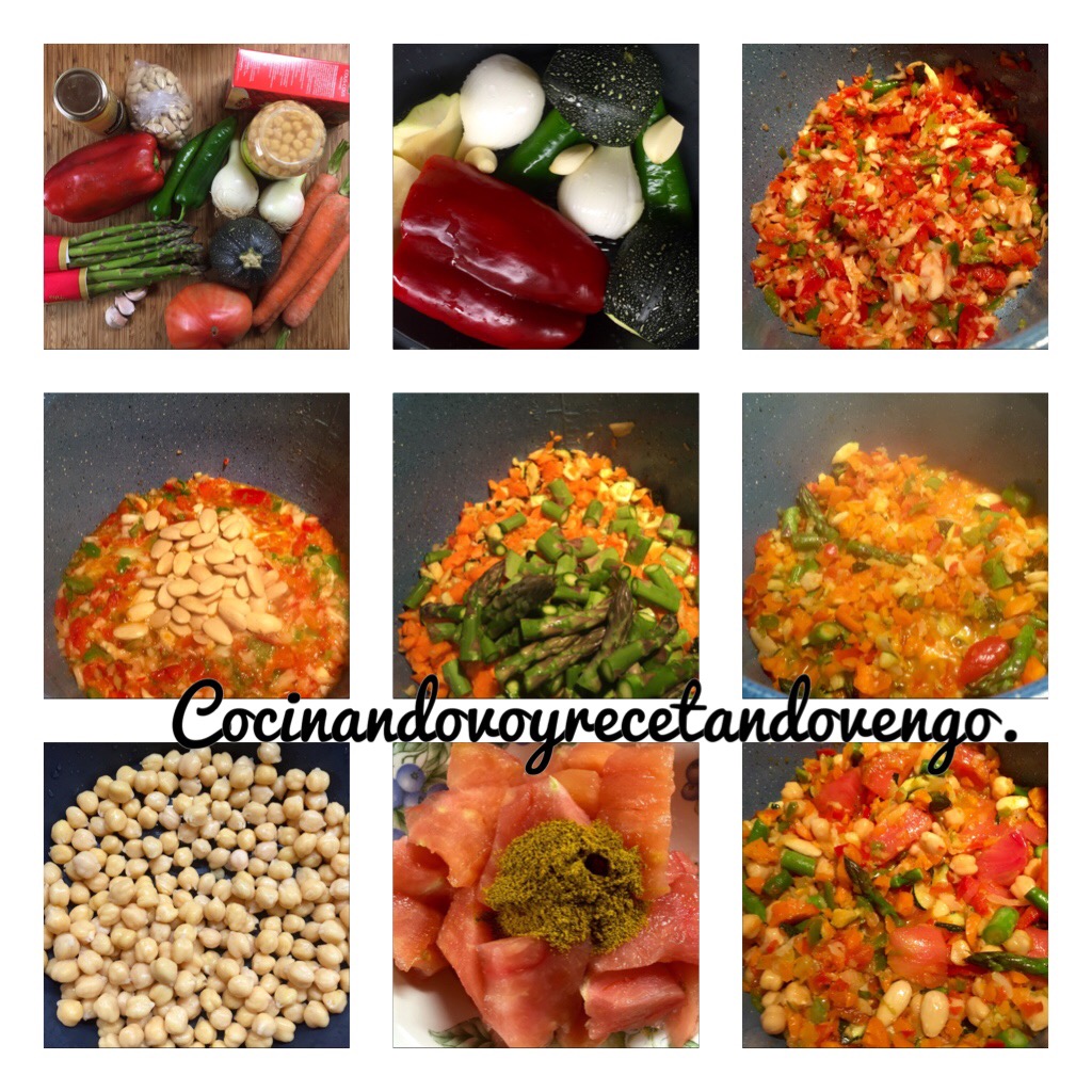 NOTA: Las verduras pueden variarse al gusto, pueden usarse: Berenjenas, Col o repollo, Judías verdes, calabaza, nabo, bróculi, patata, etc.