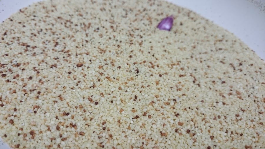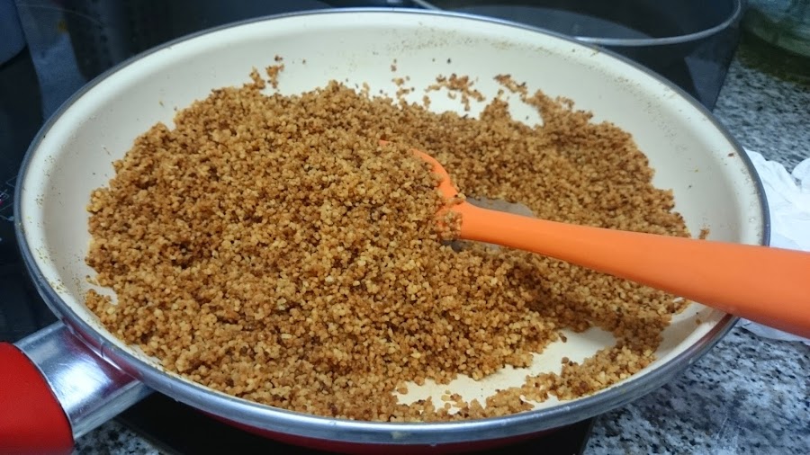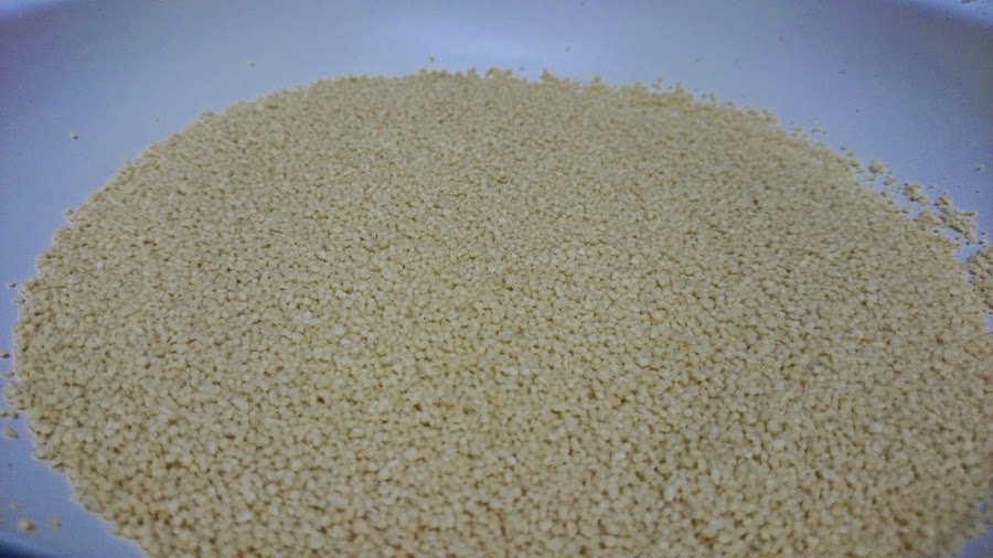 Echaremos el cuscus junto con el ajo en la sartén para que se dore.