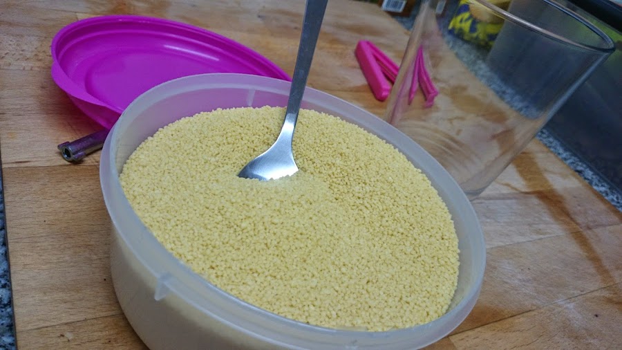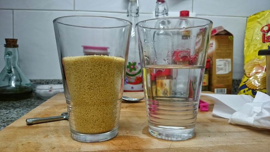 Mediremos el cuscus con el agua, siempre que sea la misma cantidad de cuscus que de agua.