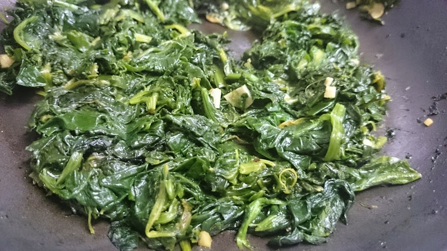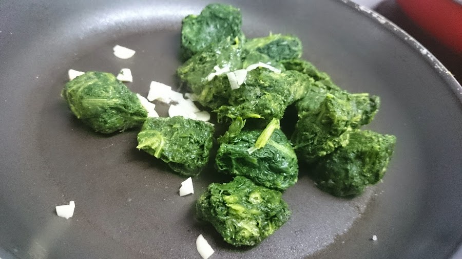 Lo reservamos y hacemos las espinacas con un poco de ajo.