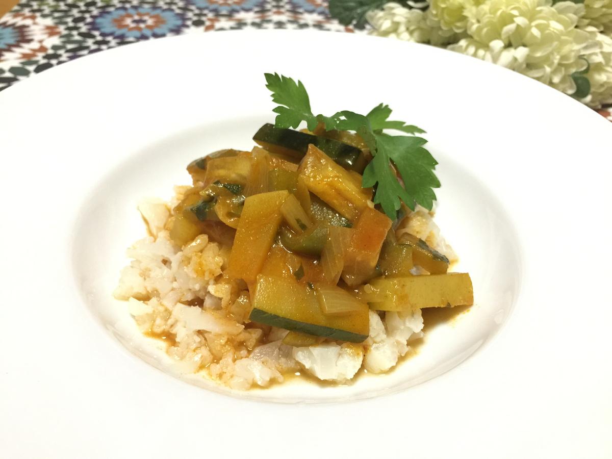 4. Transcurrido esos minutos, retira la olla del fuego y espera a que ya no tenga vapor para abrirla con cuidado. Comprueba la cocción de la verdura, la sal y el sabor de la salsa. Puedes añadir más ras el hanout si prefieres que tenga un sabor más intenso. Deja que hierva un par de minutos más sin tapa a fuego alto y apaga el fuego. Reserva.