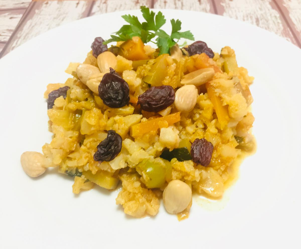 Si tenéis niños en casa y les gusta la verdura se comerán bien este plato, aunque debéis tener cuidado con no poner mucho ras el hanout (si comen niños usaría media cucharadita solo). ¡Y cuidado también con los frutos secos si son pequeños!
