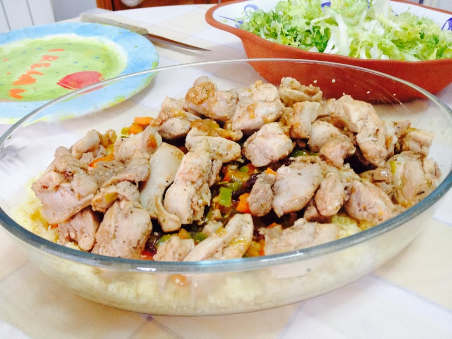 He adaptado a mi manera esta receta: http://www.recetasderechupete.com/cuscus-con-pollo-y-verduras-receta-paso-a-paso/4356/