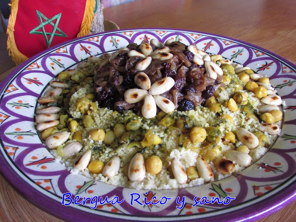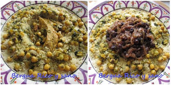 ¡Hay tantas recetas que me apetece hacer y publicar! Msmen o rgayef, baghir, pastela, batbout, basboussa, limón encurtido... Finalmente me decanté por el cuscús tfaya, que lleva cebollla caramelizada, pasas y garbanzos. Es un plato que me encanta y, además, es el que estábamos cenando mi vikingo y yo en Chefchaouen la noche que nos prometimos. Así que ha sido muy especial prepararlo.