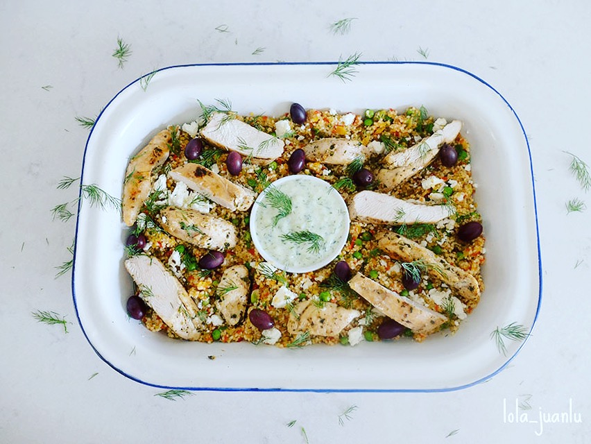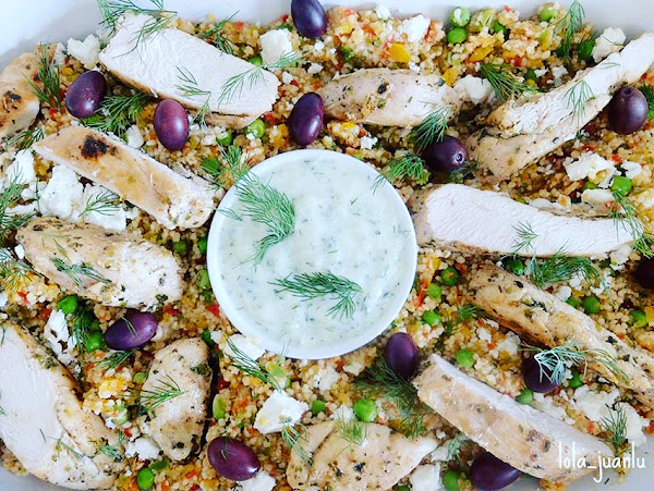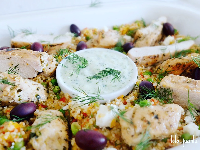 Para acompañar este delicioso cuscús vegetal con pollo griego podemos preparar un cuenco de salsa Tzatziki, receta que ya compartí con vosotros aquí.