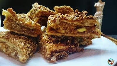 A falta de pan, buenas son tortas. Es lo que pensó Eva de Huele bien! cuando quiso hacer baklava y no tenía pasta filo. Es una manera rápida y perfecta de hacer este postre de forma más sencilla e igualmente deliciosa. Necesitaremos hojaldre, pistachos, almendras, nueces, piñones, sésamo y miel. Molemos todos los frutos secos, los mezclamos con miel y extendemos sobre la mitad del hojaldre. Cubrimos con la otra mitad y cubrimos con miel y sésamo. Al horno y listo. ¿Sencilla, verdad? Pues, ¡venga a verla!