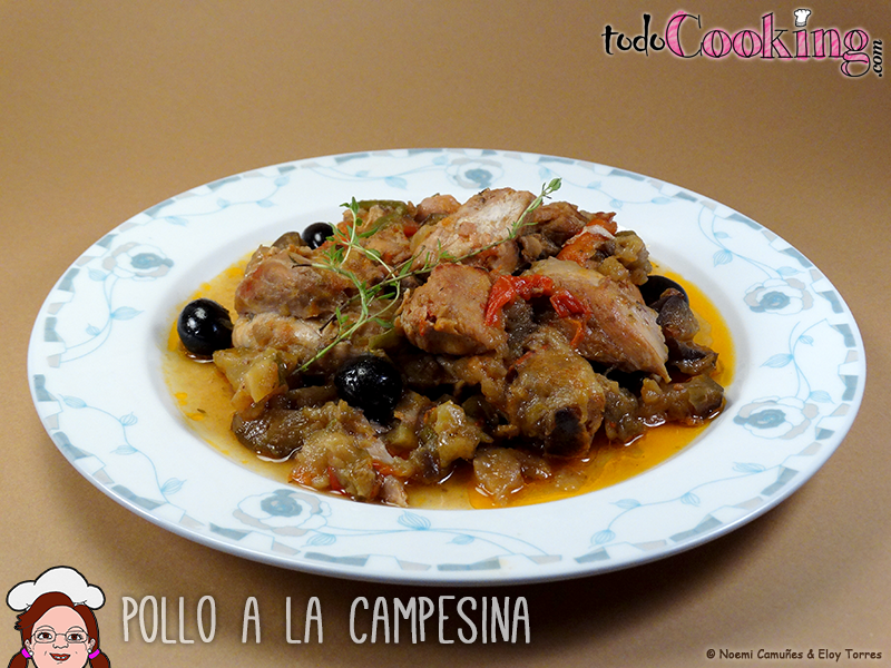 Nuestra amiga de Todocooking, Noemí nos deja una recetaza. Un pollo a la campesina que está de vicio. Sencillo y económico. Nos hace falta pollo, bacon, cebolla, pimiento, tomate, berenjenas, calabacín, caldo, aceitunas, aceite, sal y tomillo. Pochamos la cebolla y el bacon y doramos el pollo. Agregamos las verduras poco a poco y echamos el caldo y las aceitunas. Cocemos hasta que esté tierno y listo. ¡Esa salsita está para mojar pan! ¡Corre a ver todos los detalles!