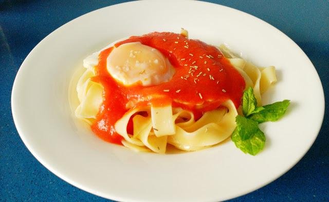 Una receta muy fácil de hacer que nos presenta el blog Cocina a Buenas Horas, cocinamos la pasta en agua hirviendo con sal, cuando esté lista la retiramos del fuego y colamos, posteriormente colocamos en un plato dándole forma de nido y previamente escurrida. Freímos un huevo en una sartén con aceite. Colocamos encima de la pasta y servimos con tomate frito caliente. Puedes ver al detalle la elaboración y resto de ingredientes haciendo clic a continuación: