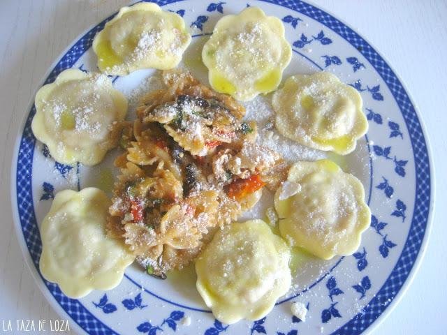 En el blog La Taza de Loza, encontramos la forma de hacer pasta fresca en casa. Hacemos la masa mezclando la harina junto con los huevos y la sal. Dejamos reposar, estiramos y cortamos dándole forma, rellenaremos con una mezcla que habremos elaborado previamente con 3 tipos de queso; parmesano, de bola y ricota, además de añadirle algunas especias. Cerramos como si hiciéramos unas empanadillas y cocinamos en agua hirviendo con sal. Sacamos del agua y servimos con aceite y queso rallado. Puedes ver el detalle esta deliciosa receta a continuación: