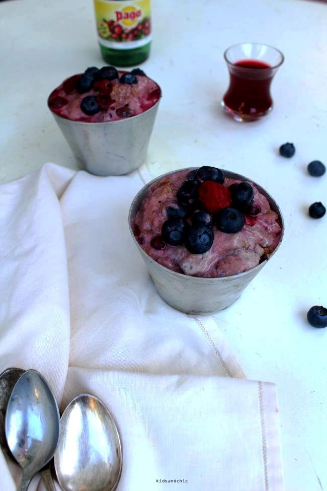 Vaya combinación más deliciosa también la que nos trae Rocío de Kids&Chic. Un helado de arándanos con galletas que nos vendrá genial para el calorcito. Necesitamos zumo de arándanos, queso crema, azúcar, arándanos y galletas. Hacemos una crema con los arándanos, el zumo y el azúcar. Añadimos el queso y luego las galletas trituradas. Congelamos y listo. No te lo pierdas. ¡Te encantará!