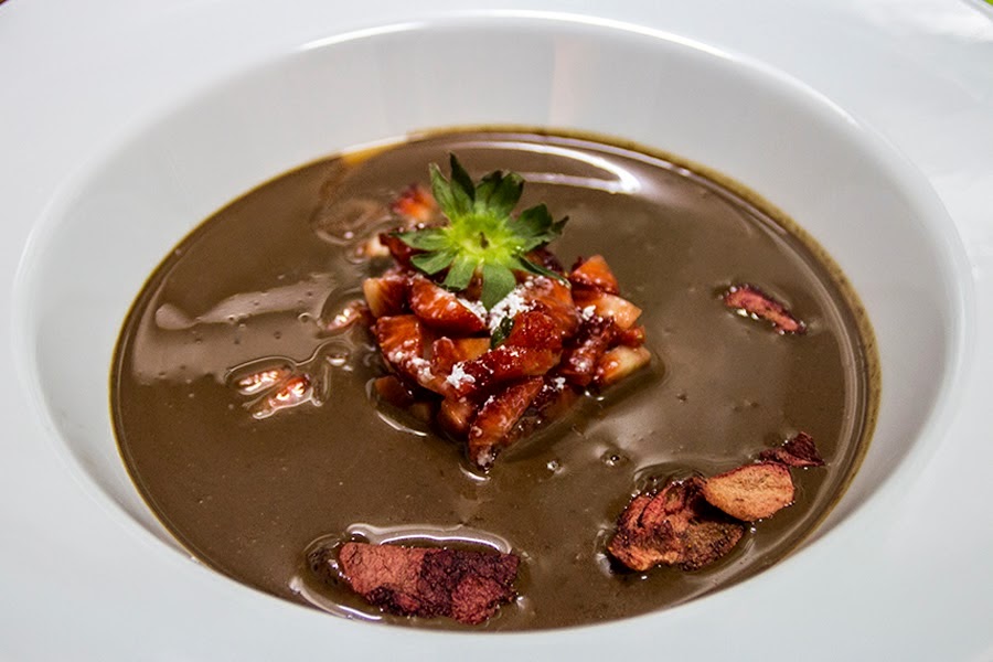 Cerrando ésta recopilación, Victor desde DVICIO BARCELONA, triunfando con ésta SOPA FRIA DE CHOCOLATE AL RON CON TARTAR DE FRESAS. No se puede pedir más.