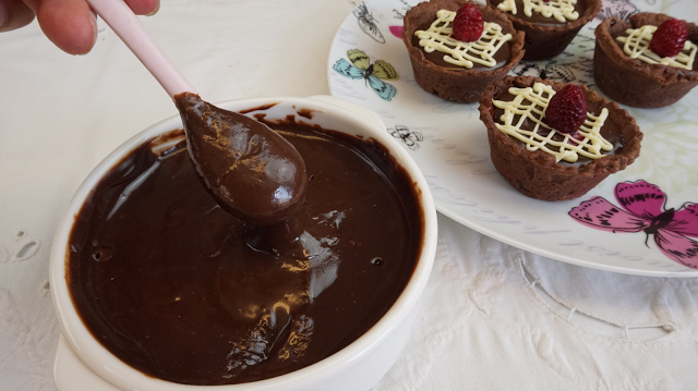 Y a las de crema de barriloche usé unas tartaletas de cacao,puse un poco de mermelada de fresa,la crema bariloche y un poco de chocolate blanco. ¡Una delicia!