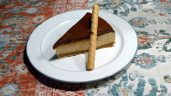 base (100 gr de galletas molidas-50 gr de arroz inflado chocolateado-100 gr de chocolate negro-50 gr de mantequilla),relleno (500 cl de nata-1 tableta de turrón de Jijona-1 vaso de leche-1 sobre de cuajada-50 gr de azúcar),almendra molida y cubitos de chocolate negro para adornarEn un cazo grande poner la nata a calentar, deshacer el turrón con las manos e incorporar a la nata junto con el azúcar. Remover. Deshacer el sobre de cuajada en el vaso de leche e incorporar también. Remover hasta que hierva un poco, pero no dejéis de remover para que no se queme. Sacar del fuego y dejar templar. Entonces echar la mezcla sobre la base y la dejáis en la nevera que cuaje toda la noche. Y después la desmoldáis y la adornáis con almendra en cubitos y algo de chocolate negro fundido. Pinceláis con chocolate en un papel vegetal y lo dejais en la nevera que se enfríe y decorar al gusto.