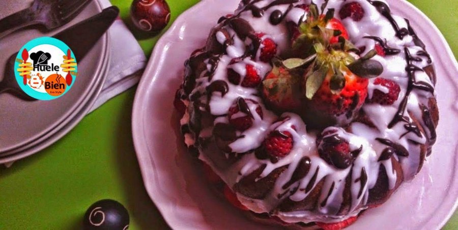 Por último, nos paramos en la cocina de nuestra amiga Eva del blog Huele bien! que nos ha hecho un fantástico bundt cake de chocolate. Este bizcocho es muy especial porque va también relleno y desde luego sólo hay que verlo para que se nos haga la boca agua. Los ingredientes que vamos a necesitar son: huevos, margarina, azúcar, harina, levadura, chocolate fondant, nata y canela (para el bizcocho); fresas, queso en crema, azúcar glas, nata y azúcar avainillado (para el relleno). Para la cobertura y decoración: azúcar glas, zumo de limón, chocolate fondant, nata y fresas. Para hacer el bizcocho, mezclamos las yemas con el azúcar y la margarina. Montamos las claras a punto de nieve y derretimos el chocolate con un poco de nata. Mezclamos el chocolate con las yemas y luego la harina y la levadura. Finalmente, mezclamos con las claras, echamos en el molde y horneamos. Preparamos la cobertura mezclando el azúcar glas con el zumo y por otra parte, derretimos el chocolate y la nata. Partimos el bundt cake en dos y con la cobertura decoramos la parte superior, añadiendo también algunas fresas. Rellenamos la otra parte con fresas cortadas y la mezcla de la nata montada, el azúcar y el queso. Dejamos que se enfríe, cubrimos y terminamos de decorar. ¡¡Fantástico!! Todos los pasos en el blog. ¡¡Ya verás qué delicioso!!