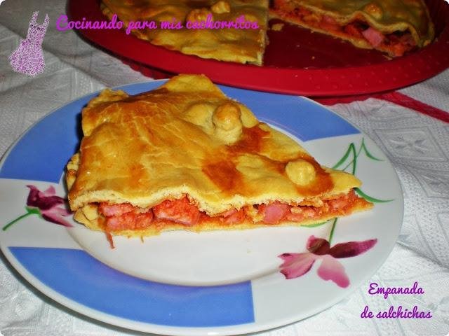 En especial para los mas pequeños, en el blog Cocinando con los cachorritos, os propongo empanada de salchichas,en esta ocasión es masa quebrada,las salchichas son frescas de carnicerias de confianza, van hechas con ajo y vino, rellenamos la masa con estas salchichas y la metemos al horno, es una delicia que gustará tanto a niños como a mayores.