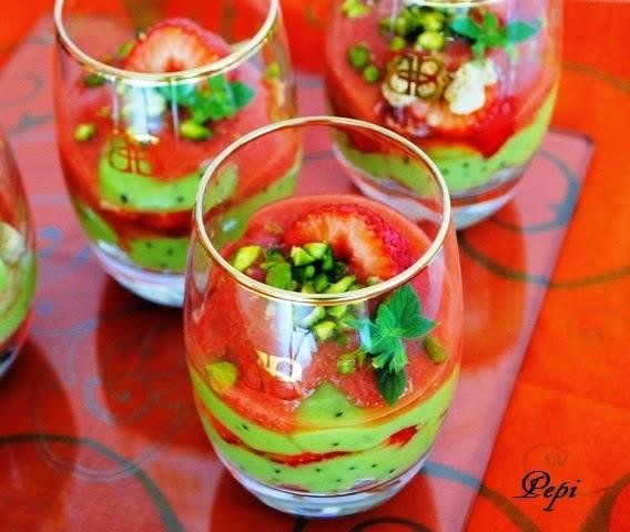Y una idea que me ha encantado, el aguacate de postre!! en el blog Sopa de Sopa, que nos propone un Tiramisú de aguacate y fresa, para hacerlo se necesita, aguacates,kiwis, fresas, lima, palos de limon grass,azúcar moreno, unas galletas y un poco de azúcar vainillada, tenemos que cortar los palos de lemon grass y cocerlos hasta hacerlos infusionar, cortamos las fresas, rallamos las limas,y cogemos el zumo de estas, maceramos las fresas en el zumo y las ralladuras, tirturamos las galletas y hacemos un puré con el aguacate, las fresas y los kiwis,todo por separado, para crear capas, vamos poniendo capas de galletas y capas de la fruta, en el blog vienen todas las indicaciones, pero la pinta es uhmmm.