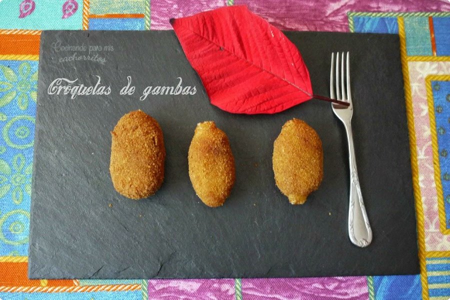 Adoro las croquetas, me da igual el relleno, son mi pasión y estas Croquetas de Gambas del blog Cocinando para mis cachorritos se ven deliciosas, para hacerlas necesitamos, gambas congeladas, harina, aceite, leche y ajo, por último aceite para freír, hacemos una bechamel sofríendo ajo, añadimos las gambas y rehogamos, añadimos la leche y hacemos la masa de las croquetas, una vez reposadas, le damos forma y la pasamos por huevo,pan rallado y a la sartén hasta que estén doradas.