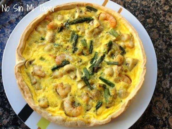 Que os parece hacer una Quiche de espárragos trigueros y gambas? podemos ver la receta en el blog No sin mi taper, para preparar esta quiche, necesitaremos, una lámina de masa quebrada, huevos, trigueros, gambas, champiñones, puerro y nata, forramos un molde con la masa quebrada, hacemos un sofrito con el puerro y los demas ingredientes, salpimentamos, batimos los huevos con la nata y cubrimos la masa con todo la mezcla, horneamos y listo para comer caliente o templado.
