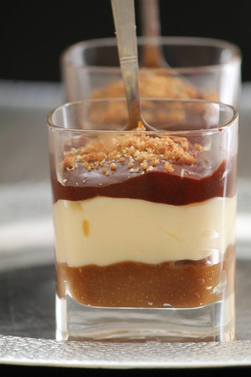 Vasitos de manzana caramelizada y crema de caramelo: