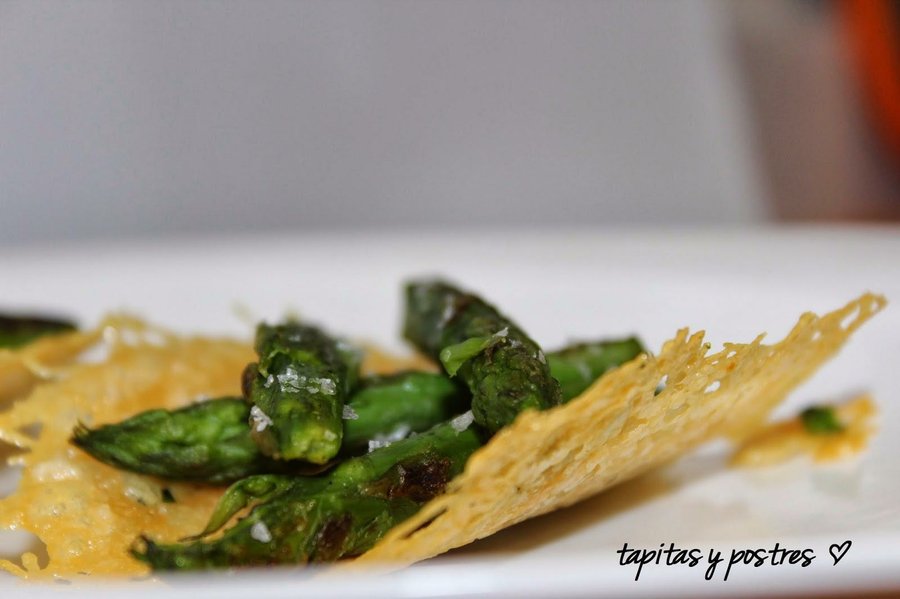 Desde Tapitas y postres nos acercan estas originales Tejas de parmesano con espárragos. Con sólo 4 ingredientes puedes preparar este aperitivo. Debes calentar y dar forma al queso parmesano rallado como nos indica Ma José, luego preparamos los espárragos, montamos sobre la teja de queso y listo!. Mira AQUÏ la receta.