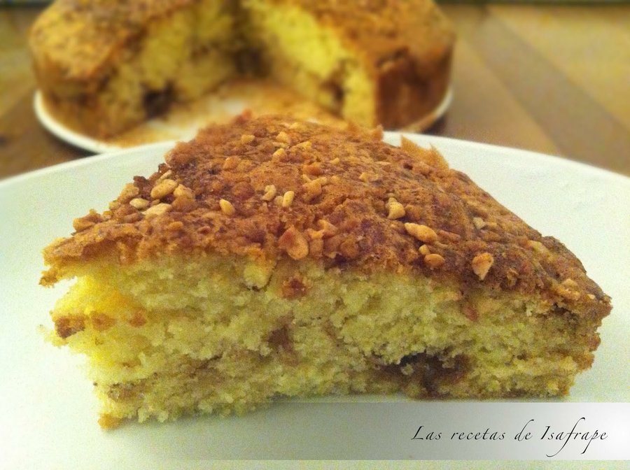En segundo lugar, la receta que nos trae Isabel de su blog , Las recetas de Isafrape. Atentos a este bizcocho crocanti , impresionante. Primero mezclamos mantequilla con azúcar y luego añadimos los huevos uno a uno. Incorporamos harina, levadura y bicarbonato, a continuación sal y yogur, todo siempre mezclando poco a poco. Ponemos la mitad de la mezcla en un molde de horno y encima la mitad del relleno (que tiene azúcar moreno, canela molida y crocanti). Vertemos la otra mitad de la masa y por último el resto de rellano. Horneamos y listo.