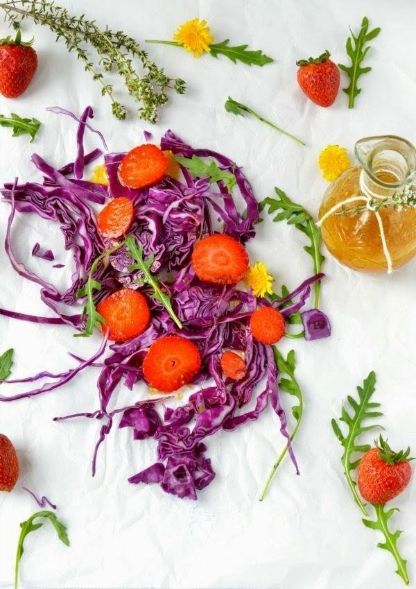 ENSALADA DE LOMBARDA, FRESAS Y RUCULA (ver receta completa pinchando en enlace)