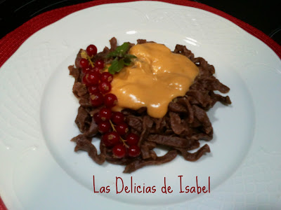 ¿Quién dijo que la pasta no podía ser dulce? Mirad la maravilla que nos propone Las Delicias de Isabel: Tallarines al cacao con salsa de turrón. Para prepararlos, haremos la pasta fresca como lo hacemos habitualmente, y le añadimos cacao antes de dejarla reposar durante, al menos, una hora. Con ayuda de un cortados, vamos haciendo los tallarines y los enharinamos. Para preparar la salsa: Ponemos en un cazo la nata a calentar junto con el turrón a fuego medio hasta que se disuelva bien. Añadimos el chupito de licor, damos unas vueltas mas y reservamos. Hervimos nuestra pasta con cacao y servimos con esta deliciosa salsa por encima. Una auténtica maravilla