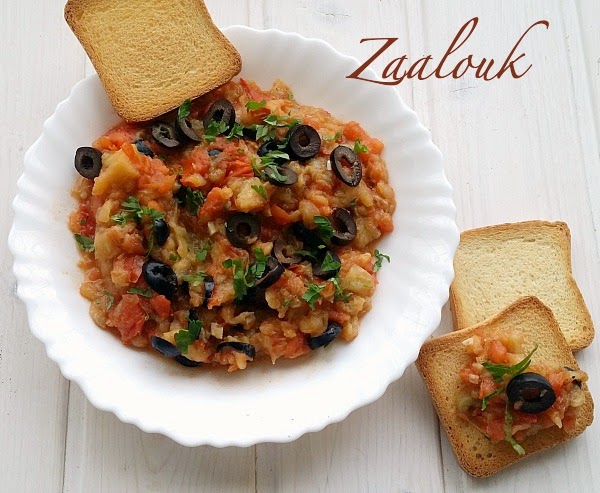 El blog No sin mi taper, nos propone esta Zaalouk {ensalada marroquí de berenjenas}. Para preparar esta ensalada, cortamos las berenjenas para asarlas (bien al microondas o bien en el horno). Cuando las tengamos listas, les quitamos la carne y la reservamos. En una sartén, pochamos el ajo picado, el tomate y la carne de las berenjenas y cocinamos. A esto, le añadimos el zumo de limón y las especias y pochamos unos minutos antes de añadir las olivas negras. Se puede servir templado, pero para mi gusto está más rico a temperatura ambiente. Originalmente es una ensalada marroquí, pero yo lo suelo servir para acompañar unas tostadas, como aperitivo.