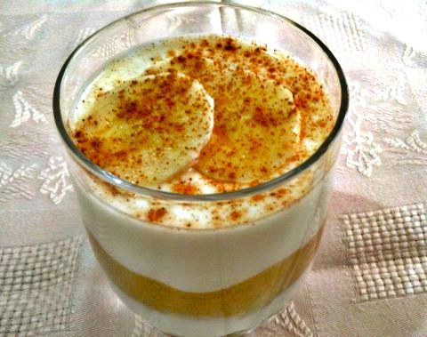 Este postre , que nos presentan desde La dulzura de Mari, a igual que el resto que te muestro en esta selección, es también muy sencillo, bajo en calorías y por supuesto buenísimo. Los ingredientes que necesitamos para hacerlos son yogures, plátanos, mermelada de albaricoque, edulcorante y canela.