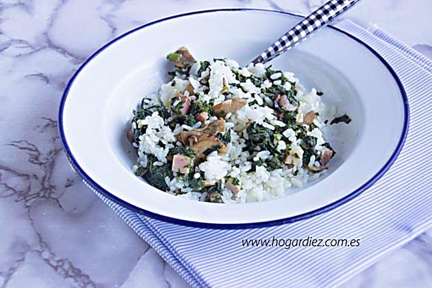 Arroz con espinacas y champiñones - Marta nos trae una receta que puede ser perfectamente un plato único para comer o cenar, por lo que no tendremos que hacer un segundo, fácil de hacer y riquísimo. Para preparar este plato vas a necesitar arroz, pavo en dados, espinacas, ajo, champiñones laminados, sal y aceite. La preparación es muy fácil, solo hay que cocer las espinacas y el arroz, doramos el pavo con los ajos y también los champiñones, luego solo hay que mezclar todo, puedes ver AQUÍ LA RECETA