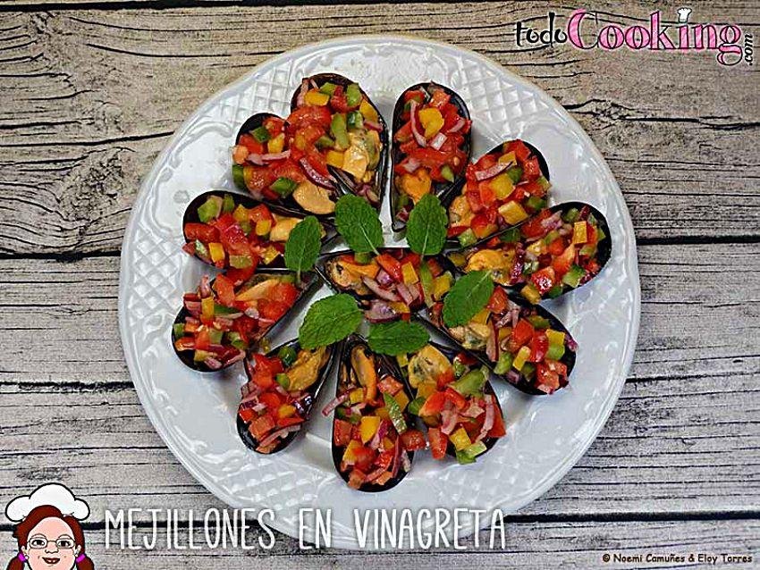 Mejillones a la vinagreta - Noemí nos trae un plato que no te puedes perder, exquisito y saludable que además resulta muy vistoso. Para hacerla utilizar mejillones frescos y vivos cocidos al vapor, que no tienen nada que ver con los que se compran ya cocidos. Para hacer esta riquísima receta vas a necesitar mejillones frescos, tomate en rama o tipo pera, pimiento verde, pimiento rojo, pimiento amarillo, cebolla roja, aceite de oliva, vinagre de vino blanco y sal. La preparación es muy fácil, tan solo hay que cocinar los mejillones al vapor y preparar la vinagreta picando y mezclando los demás ingredientes, para hacerlo puedes ver AQUÍ LA RECETA
