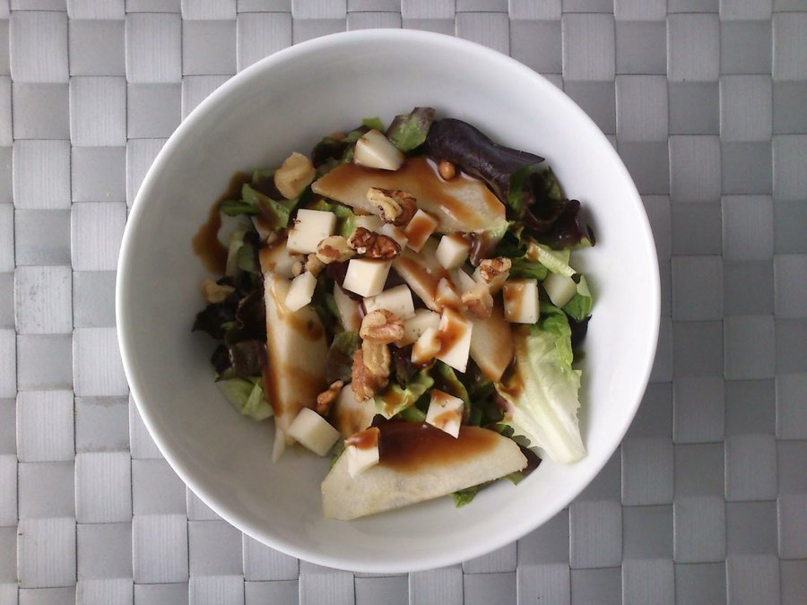 Y, ¿Por qué no, una ensalada de legumbres? En este caso de lentejas, pera, queso y nueces.
