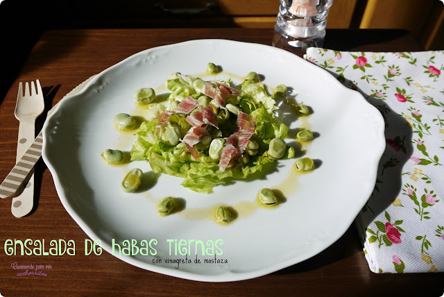 Con habas, lechuga, mostaza y jamón, puedes preparar esta ensalada de habitas tiernas y vinagreta de mostaza.