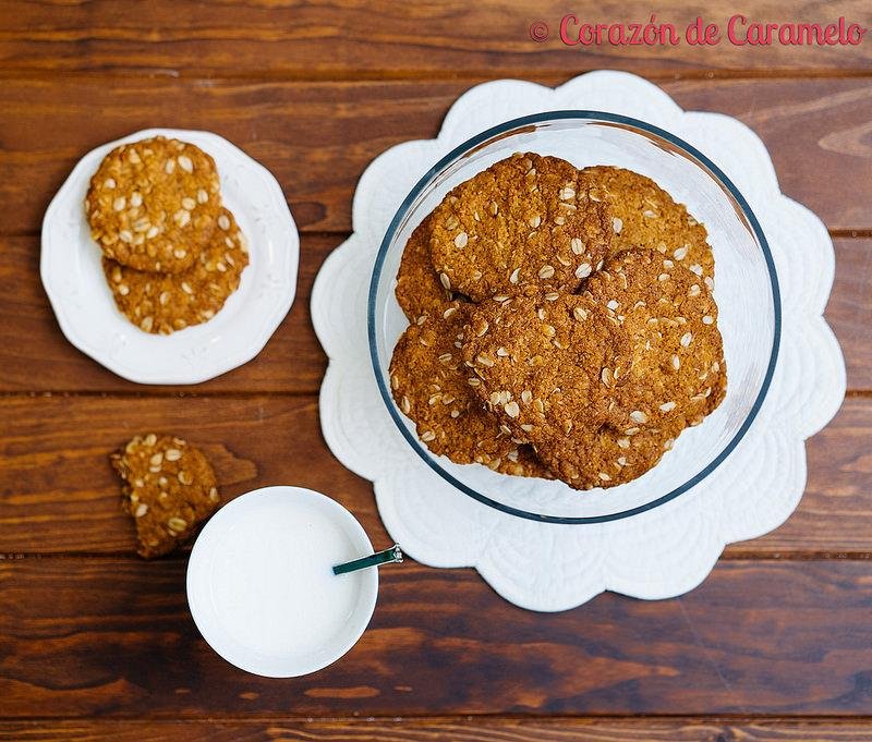 Desde el blog Corazón de Caramelo, Bea nos trae estas riquísimas galletas de coco y avena, una receta de origen australiano, que además tiene la ventaja, de que no utilizan huevo en su preparación, así que es ideal para las personas con intolerancia. Para preparlas necesitaremos avena, harina, coco, azúcar, bicarbonato, miel de caña, agua y leche. Mezclamos los ingredientes secos. Aparte derretimos la mantequilla y le agregamos la miel de caña, también calentamos el agua le añadimos el bicarbonato y lo mezclamos con la mantequilla. Finalmente, agregamos los ingredientes secos a la mantequilla, formamos las galletas y las llevamos al horno y en cuanto se enfríen tendremos unas crujientes y aromáticas galletas para disfrutar.