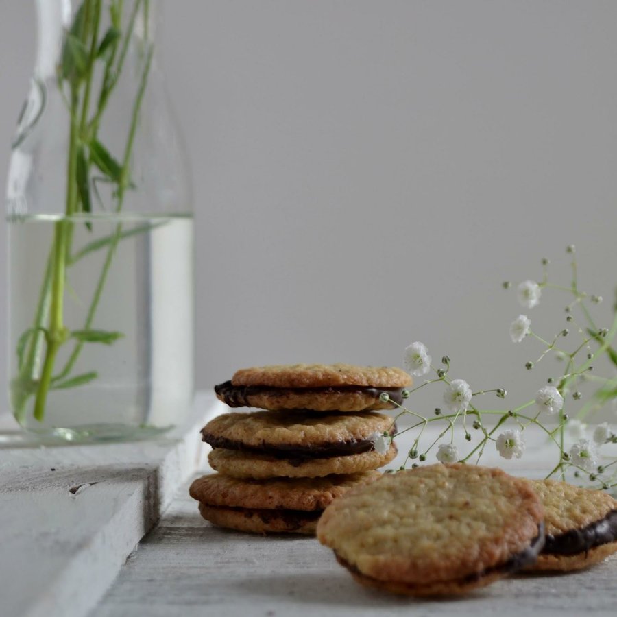 Desde el blog Contigo en la playa, Raúl nos trae unas fantásticas galletas, similares a las que podemos comprar en Ikea. Son unas galletas más bien delgadas, que van cubiertas por una de sus caras con chocolate fundido y las dejamos enfriar de dos en dos, de tal forma que nos queda una especie de galleta de avena tipo sandwich y justo en medio el chocolate. Sin duda una combinación muy tentadora. Para preparalas necesitaremos: copos de avena, azúcar, harina, margarina, un huevo, extracto de vainilla, levadura y chocolate de cobertura. Procesamos los copos de avena, hasta convertirlos en harina, los mezclamos con el azúcar, la sal, la harina y la mantequilla, mezclamos y finalmente añadimos el huevo, la vainilla y la levadura. Dejamos reposar la mezcla en la nevera y posteriormente formamos y horneamos las galletas. Cuando se hayan enfriado las pasamos por el chocolate fundido y las vamos uniendo de dos en dos, por la cara del chocolate, las dejamos enfriar y ya las podemos disfrutar.