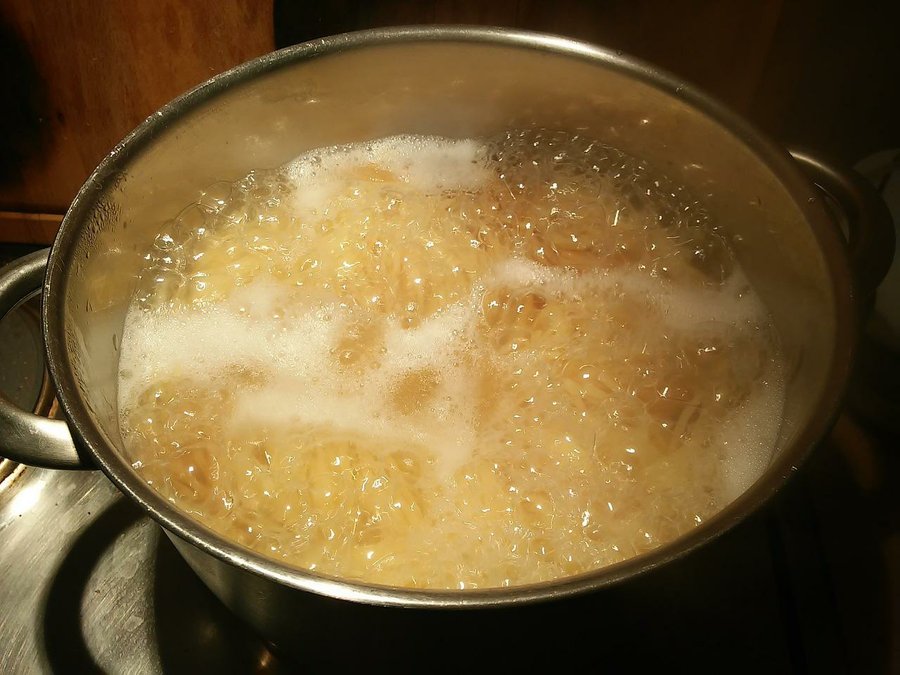 El agua no salada hierve a 100 grados, mientras que el agua salada tarda un poquito más, pero teniendo en cuenta las proporciones que usamos de agua, la diferencia de tiempo sería bastante irrelevante. Si lo que queréis es ganar tiempo, ¡acordaos de colocar la tapadera! Otra cosa importante es no echarle ni aceite ni mantequilla ni nada más al agua. Para que la pasta no se pegue, bastará removerla bien los primeros minutos de cocción y, después, escurrirla en el modo correcto.