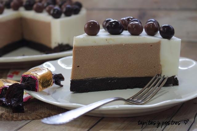 Comenzamos nuestro viaje por la web y nos paramos en el blog de nuestro amigo Jesús, Cocina fácil y elaborada, para que se nos haga la boca agua con esta fantástica tarta de chocolate a la cereza rellena de Nutella y dulce de leche. Con ese título no habrá quién se resista. Para hacerla necesitaremos: unas planchas de bizcocho genovés, nata (o crema de leche), Nutella, dulce de leche, agua, miel y aromas (para hacer un almíbar), chocolate blanco, colorante y aroma de cerezas. Mojamos las planchas con el almíbar, montamos la nata y la mezclamos con la Nutella y el dulce de leche. Rellenamos las planchas y cubrimos con el chocolate. Al frigorífico y listo. Sencillo, ¿verdad? Pues apuntad bien las cantidades y seguid los consejos de Jesús porque os va a salir una tarta que os va a saber a gloria.
