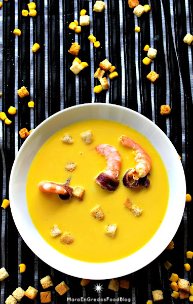 En Cocinar con amigos he visto esta crema de espárragos y langostinos que me ha parecido estupenda