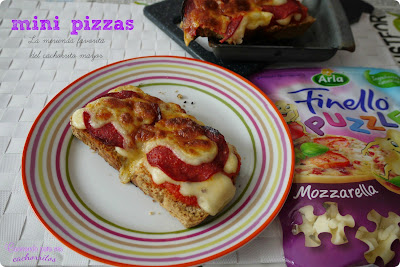 Estas falsas pizzas, son la merienda preferida del cachorrito mayor. Si llego con tiempo del trabajo, se la preparo y se las llevo al cole en un táper. Llegan templaditas, pero a él le encanta. Se pone súper contento cuando lo abre y ve que es una mini pizza, que así lo llama él.