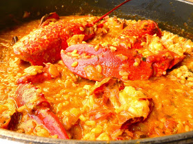 Necesitamos arroz, bogavante, tomate, puerro, cebolla, ajos, azafrán...y algunos ingredientes mas que encontrarás en el blog Les receptes que m´agraden.