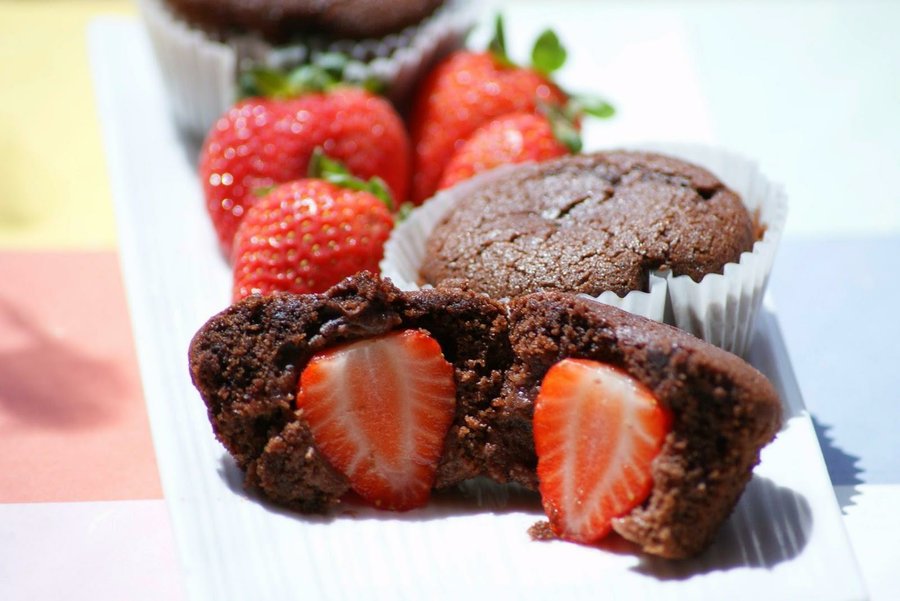MAGDALENAS DE CHOCOLATE RELLENAS DE FRESAS