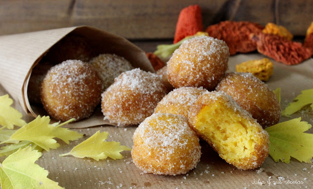 Para hacerlos tendremos que triturar la calabaza, meaclarla con el resto de ingredientes y freirlos en aceite caliente cogiendo cucharaditas de la masa y poniendolos en el aceite.