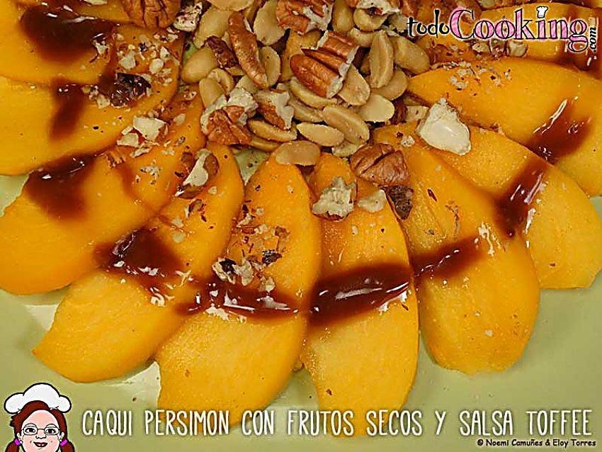 CAQUI PERSIMON CON FRUTOS SECOS Y SALSA TOFFEE