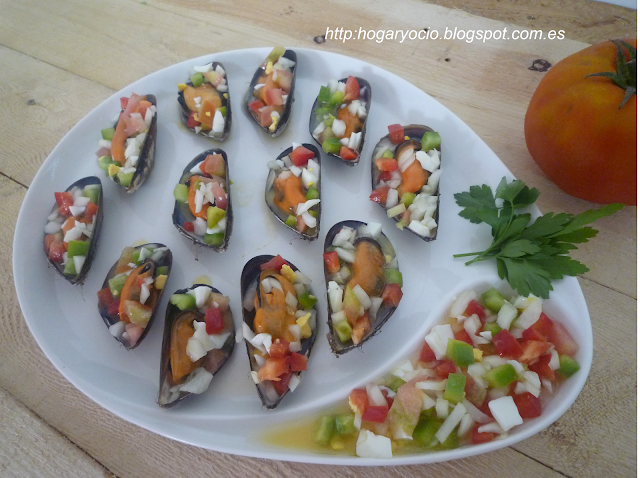 Alicia, del blog Hogar y ocio es la siguiente compañera de la Red Facilisimo que me ha ayudado a hacer este colaborativo de recetas de aperitivos, y me ha prestado estos mejillones a la vinagreta tan vistosos. Desde luego un aperitivo sano, colorido y muy rico, ¡lo tiene todo vaya!
