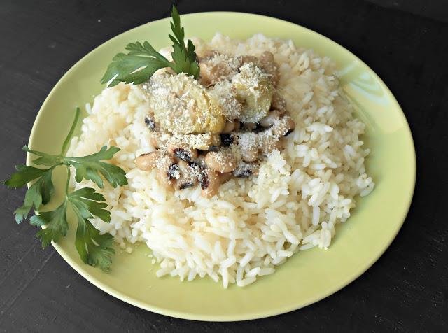Este risotto es un plato típico de Sicilia. Es sencillo y muy bueno. Se ponen las judías blancas a cocer y a parte se hace el arroz que se acompaña con las alcachofas . Cuando están ya tiernas las alubias (judías blancas) se ponen las alcachofas solo 5 minutos y se sirve este plato con queso parmesano rallado.