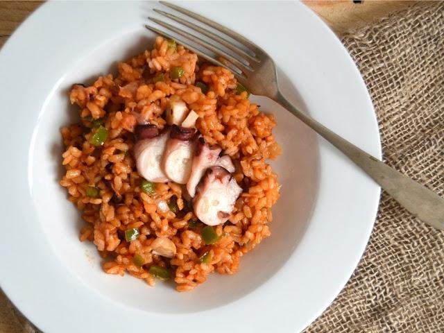 4.- Este arroz con pulpo de Juanan del blog Cuking es para morirse, de felicidad. La pintaza es espectacular y creo que tengo pulpo por ahí, así que no voy a tardar en hacerlo. Necesitarás: puerro, cebolla, ajo, pimiento verde, pimentón y el caldo de cocción del pulpo, obviamente, arroz redondo, tipo bomba. Los consejos para hacer esta receta los tienes en ESTE ENLACE.
