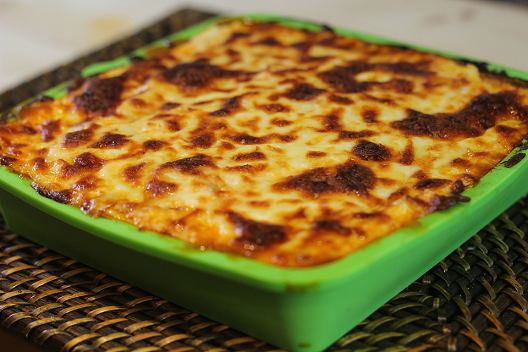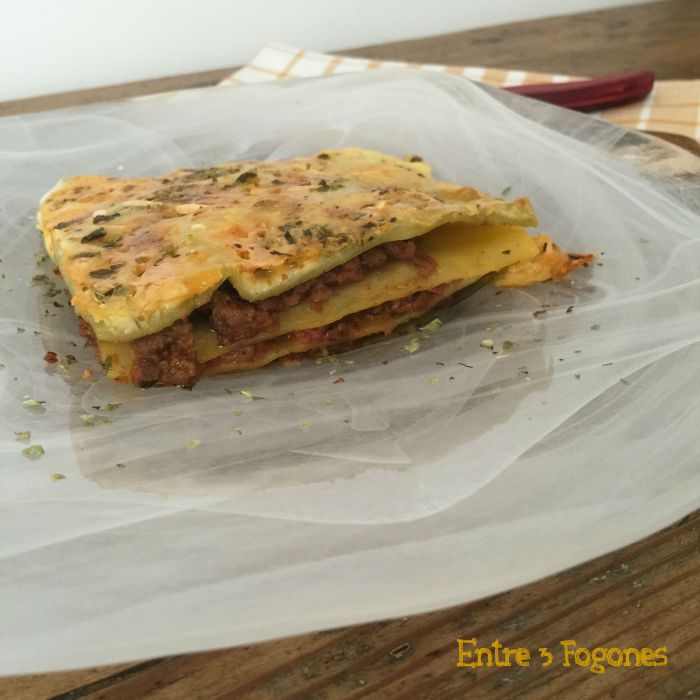 En el blog Entre 3 Fogones encontramos una variación con un toque diferente en la preparación de la carne, se adoba la carne el día anterior con especias y laurel. AL día siguiente se cocina con tomate, hojas de laurel y pate. Cuando esté lista reservamos y montamos la lasaña con capas de láminas de pasta, bechamel y la carne. Finalizamos con bechamel y dos tipos de queso, espolvoreamos orégano. Llevamos al horno, cocinamos y le damos un gratinado como toque final. Para ver al detalle la receta clic a continuación: