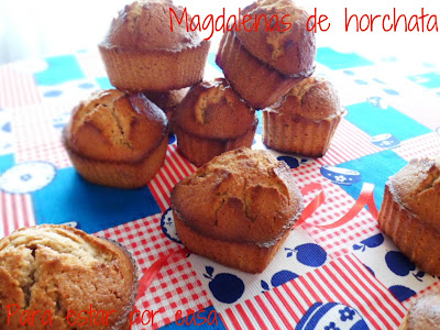 Otra versión súper original de estas clásicas magdalenas, consiste en cambiar parte de sus ingredientes por horchata. Conseguimos así unas magdalenas tremendamente ricas con sabor a horchata, ¡me encanta!